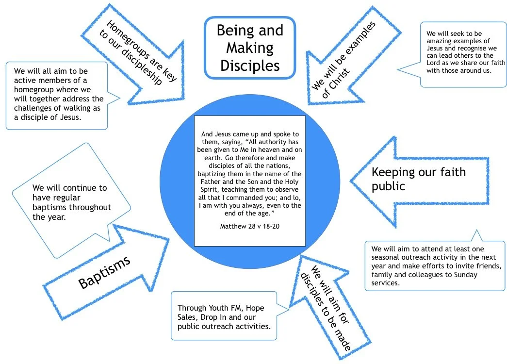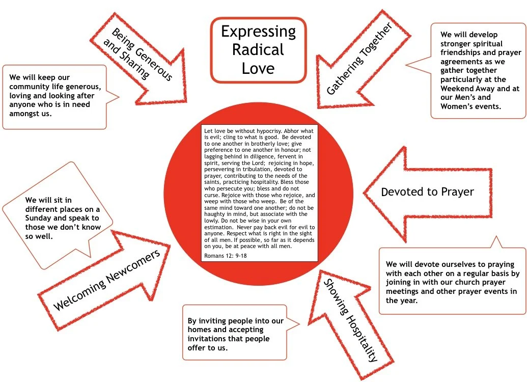 Vision CirclesThese are the areas we are aiming for at the moment.Expressing Radical Love Being and Making Disciples Spiritual Gifts Flowing